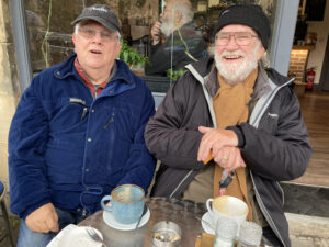 They sat and blethered in the rain, under a wee canopy, with the sound of traffic, people walking past and the odd police siren in the background.