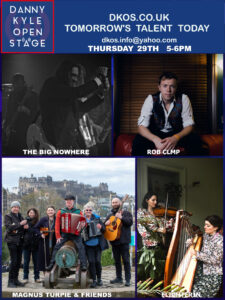 This is DAY TWELVE of the Danny Kyle Open Stage and another sparkling group of acts is all set to bring their music to the Exhibition Hall in Glasgow’s Royal Concert Hall, starting at 5 pm.