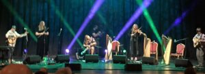 They followed that with a song, The Star of Crolly Town, that they got the lyrics of from Mairéad Ní Mhaonaigh of the Donegal supergroup Altan. The sisters had several special guests and the first invited on stage was Grammy Award-winner Moya Brennan, the voice of another Donegal Supergroup Clannad, along with harp vituoso Cormac De Barra.They sung two songs, Perdue and The Lass Of Aughrim, a traditional Irish ballad which is the centrepiece of the 1987 film James Joyce’s The Dead.